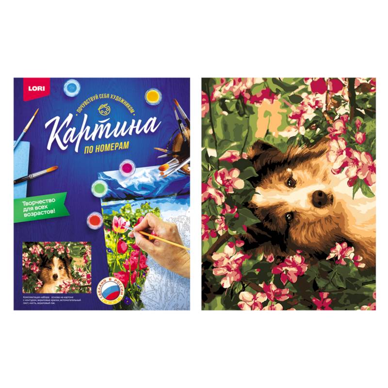 —Набор для творчества раскраска по номерам 'Колли в цветах'.