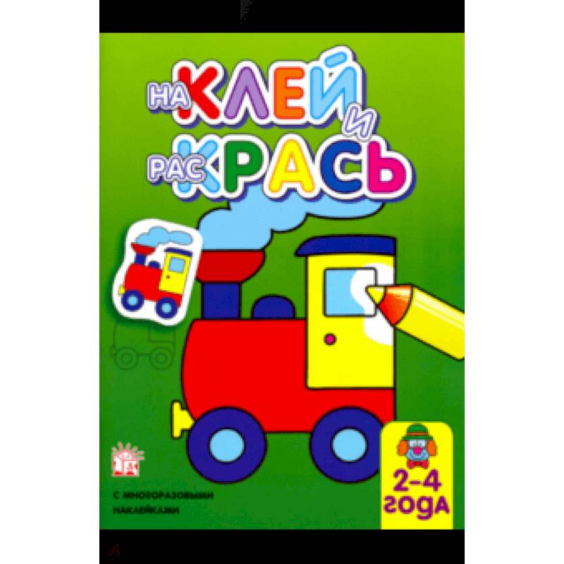 На каждой странице одна крупная картинка для раскрашивания: тут и животные, и растения, и машины, и игрушки. Картинки с толстыми контурами можно раскрасить как вздумается или найти соответствующую цветную наклейку, приклеить в угол страницы и использовать как образец.