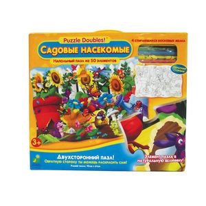 Также в набор входят 4 восковых карандаша, которыми можно раскрасить картинку на обратной стороне пазла.