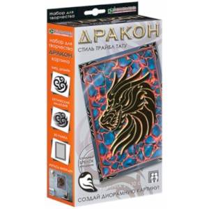 Набор «Дракон. Трайбл тату» разработан для создания оригинальной диорамной картины с хард-дизайном в стиле Трайбл тату. Основой для картины служат фэнтезийный фон с яркими контурами и броская 3D рамка, а детали из чёрной самоклейки сложатся на прозрачном пластике в мифического дракона - благодаря двухуровневому расположению изображений картина приобретает эффект оптической иллюзии.