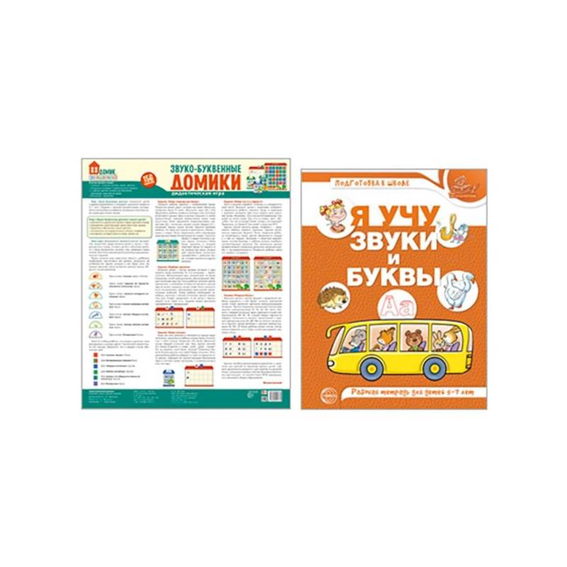 Комплект состоит из: 1. Я учу звуки и буквы. Рабочая тетрадь по обучению грамоте детей 5-7 лет. ЦВЕТНАЯ. 2.Звуко-буквенные домики. Дидактическая игра: 156 картинок букв, символов, домиков и др. В комплект вошли карточки, которые помогут познакомить малыша с буквами в увлекательной игровой форме. А также карточки с упражнениями и задачками-головоломками, направленные на развитие у ребенка 4-8 лет речевых способностей, мелкой моторики, элементарных математических представлений, ориентировки в пространстве. С комплектом не будет скучно в дороге, он прекрасно подойдет для индивидуальных и групповых занятий.